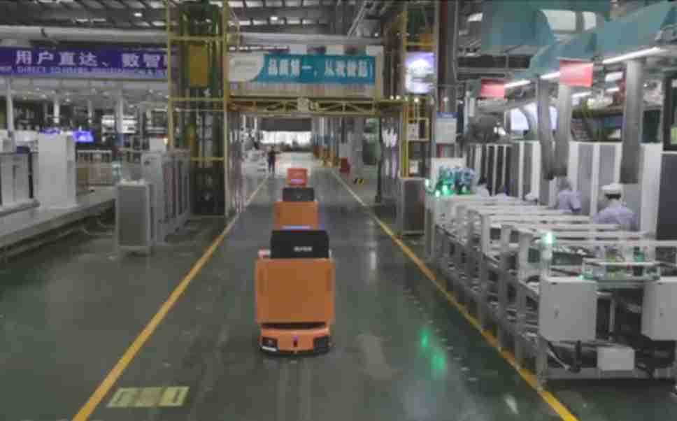 为车载冰箱物流配送打造的智能解决方案,,,,包含产中物流通过潜伏举升AMR搬运至线边,,,产后成品物流智能仓储,,,,流程包含产中物流智能齐套入库,,,,线边安灯叫料AMR智能配送至线边,,成品入库、、、出库,,,,通过无人堆高车机器人,,智能仓储管理替代人工作业管理,,,实现更高存储、、、更高效率、、更具柔性化的解决方案。。。